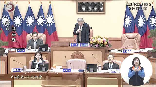 屆次會期:第4屆第6次定期會 議  程:市政總質詢-報告事項 發言議員:蔣根煌 開會日期:114-11-07 開始時間:09:59:01 結束時間:09:59:15