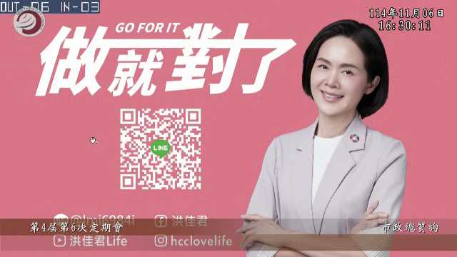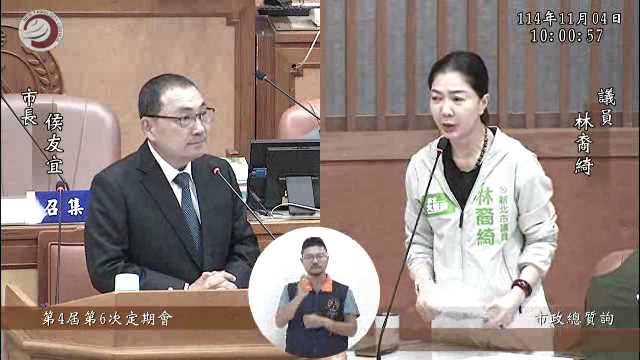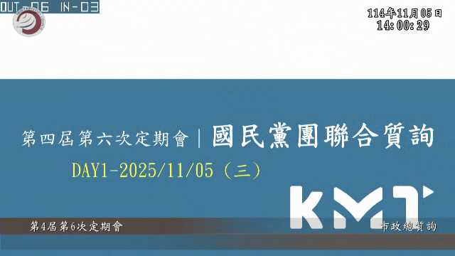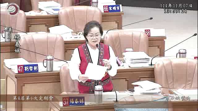 屆次會期:第4屆第6次定期會 議  程:市政總質詢 發言議員:洪佳君,黃桂蘭,蔣根煌 開會日期:114-11-06 開始時間:16:29:51 結束時間:17:26:20