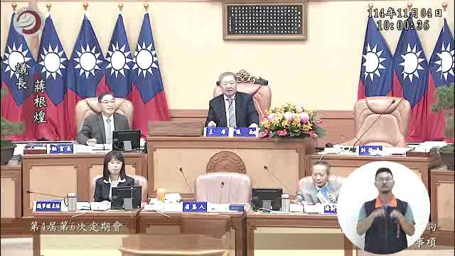 屆次會期:第4屆第6次定期會 議  程:市政總質詢-報告事項 發言議員:蔣根煌 開會日期:114-11-05 開始時間:13:59:56 結束時間:14:00:10